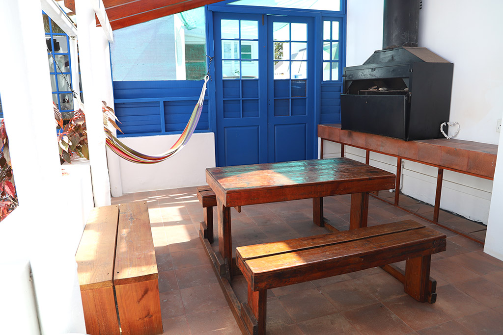 Ein überdachter Bereich mit Grill und Hängematte lädt auch hier zum Entspannen ein.
